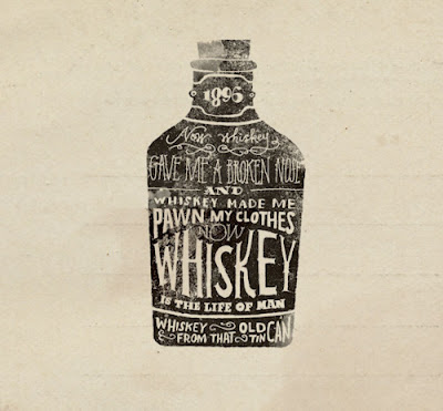 A poster featuring a poem about drinking. Really nicely composed into the shape of the whiskey bottle. I love the vintage hand-drawn feel of the piece, it's quite quirky and ties in with classic poster styles for alcohol products. The typefaces they've chosen resemble those found on old bottles of whiskey. Also the way it has been rendered looks to be some sort of lino print. Even this technique could be used when creating my final pieces for this brief.